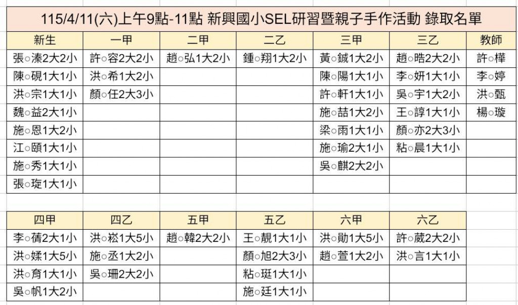 參加對象 : 新興國小之同仁、學生及家長,共100名。(須親子一同參加,大人不可單獨報名)